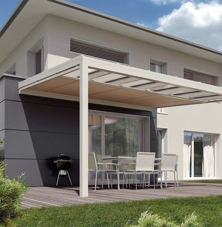 Tuch ist durch die Montage unter dem Glas geschützt vor Regen und Schnee