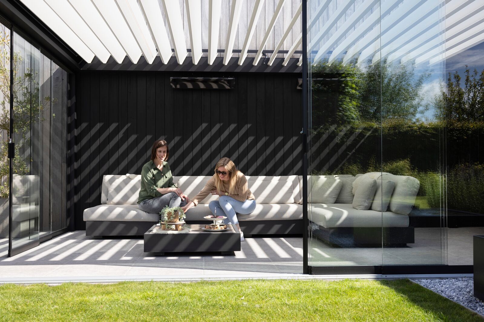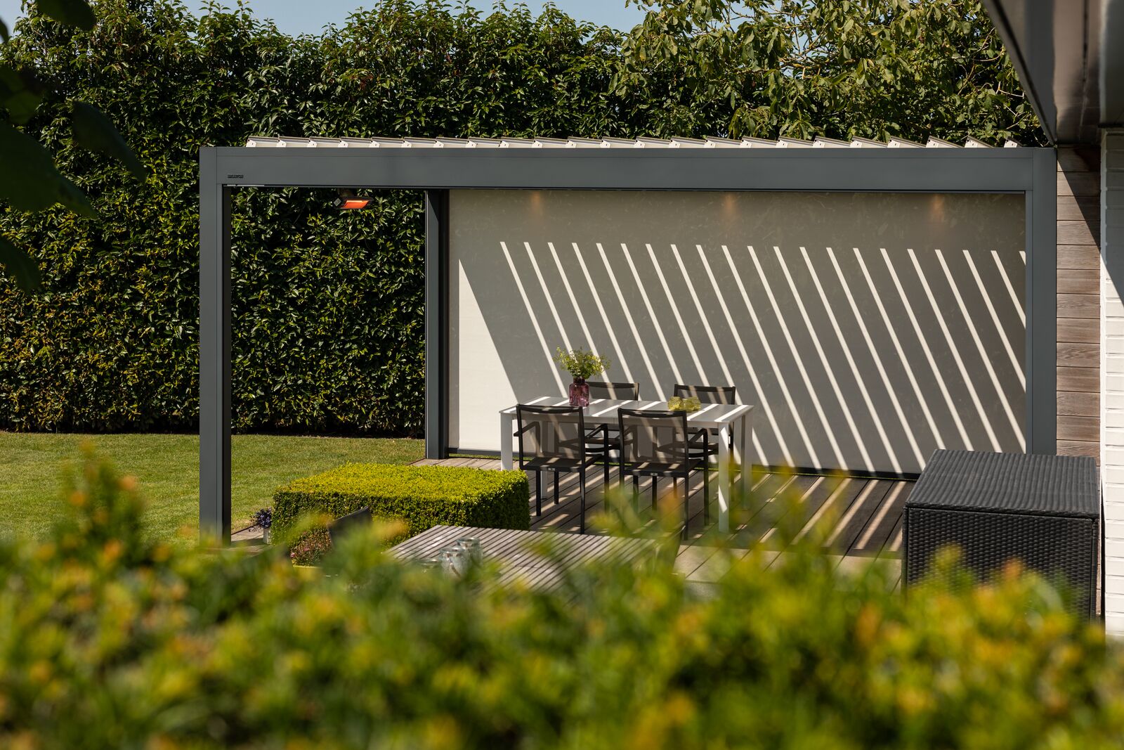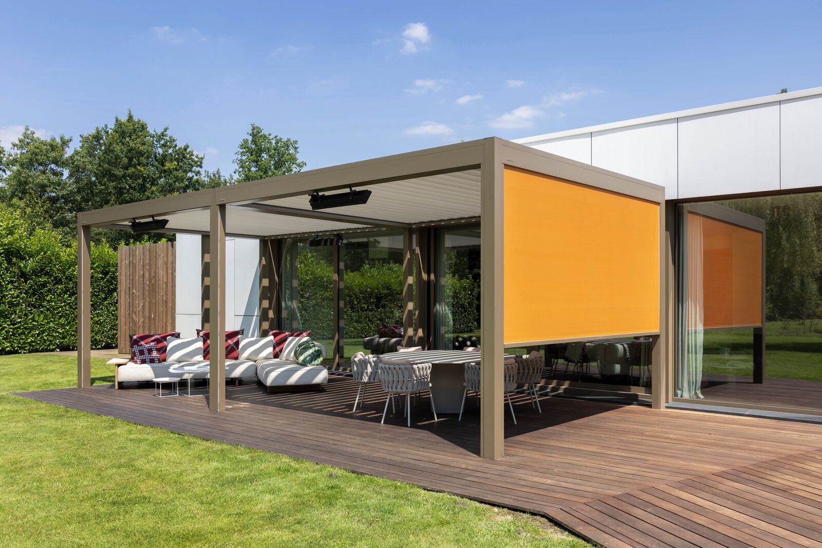 Outdoor Living ist eine Bezeichnung, die den Nagel auf den Kopf trifft: Mit diesem Aluminiumbau lässt sich ein angenehmer Aussenraum einrichten, in dem man sich vom Frühjahr bis in den Herbst wunderbar entspannen kann. Diesen Komfort verdankt das Outdoor Living B-200 Modell den windfesten Senkrechtmarkisen mit ZIP und einer Überdachung mit 160° verstellbaren Lamellen. Ihr Bedürfnis nach Wärme, Kühlung und Schutz können Sie bei jedem Wetter erfüllen.