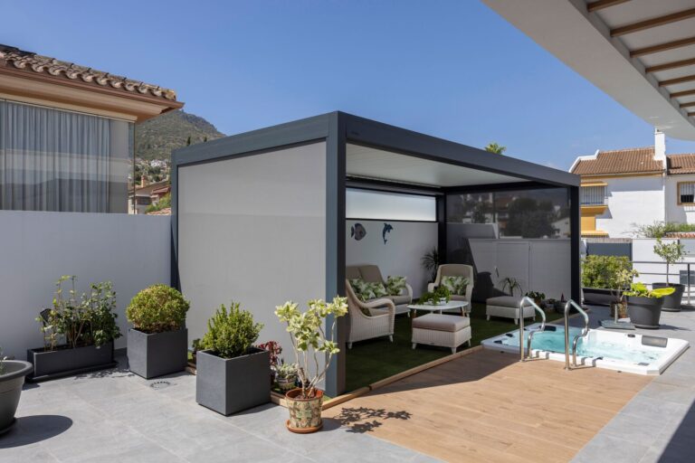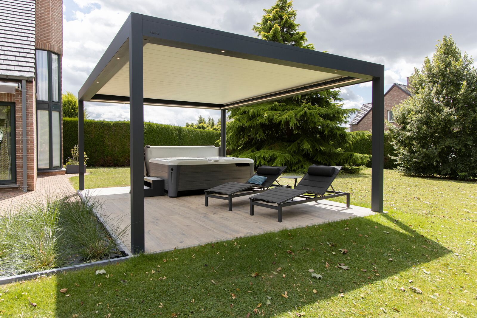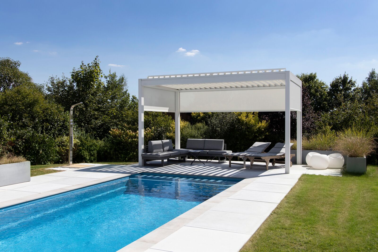 Outdoor Living ist eine Bezeichnung, die den Nagel auf den Kopf trifft: Mit diesem Aluminiumbau lässt sich ein angenehmer Aussenraum einrichten, in dem man sich vom Frühjahr bis in den Herbst wunderbar entspannen kann. Diesen Komfort verdankt das Outdoor Living B-200 Modell den windfesten Senkrechtmarkisen mit ZIP und einer Überdachung mit 160° verstellbaren Lamellen. Ihr Bedürfnis nach Wärme, Kühlung und Schutz können Sie bei jedem Wetter erfüllen.
