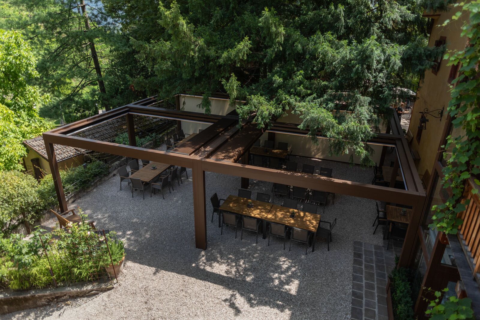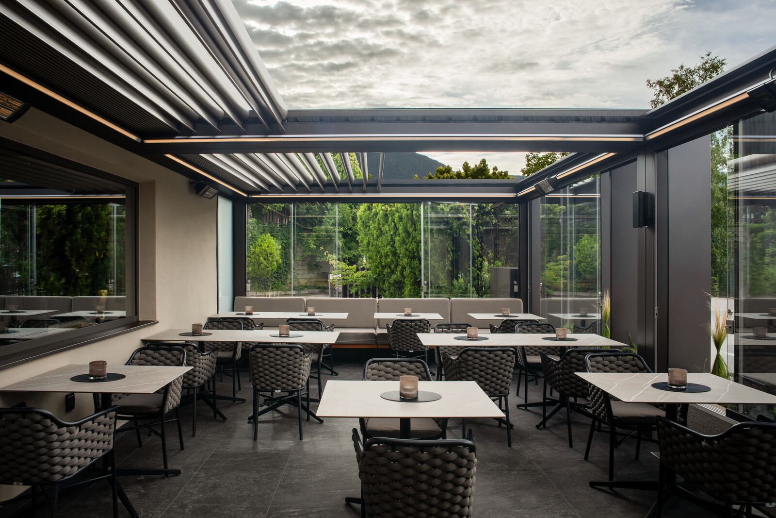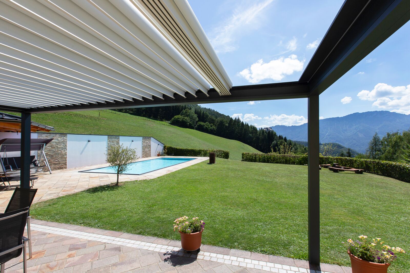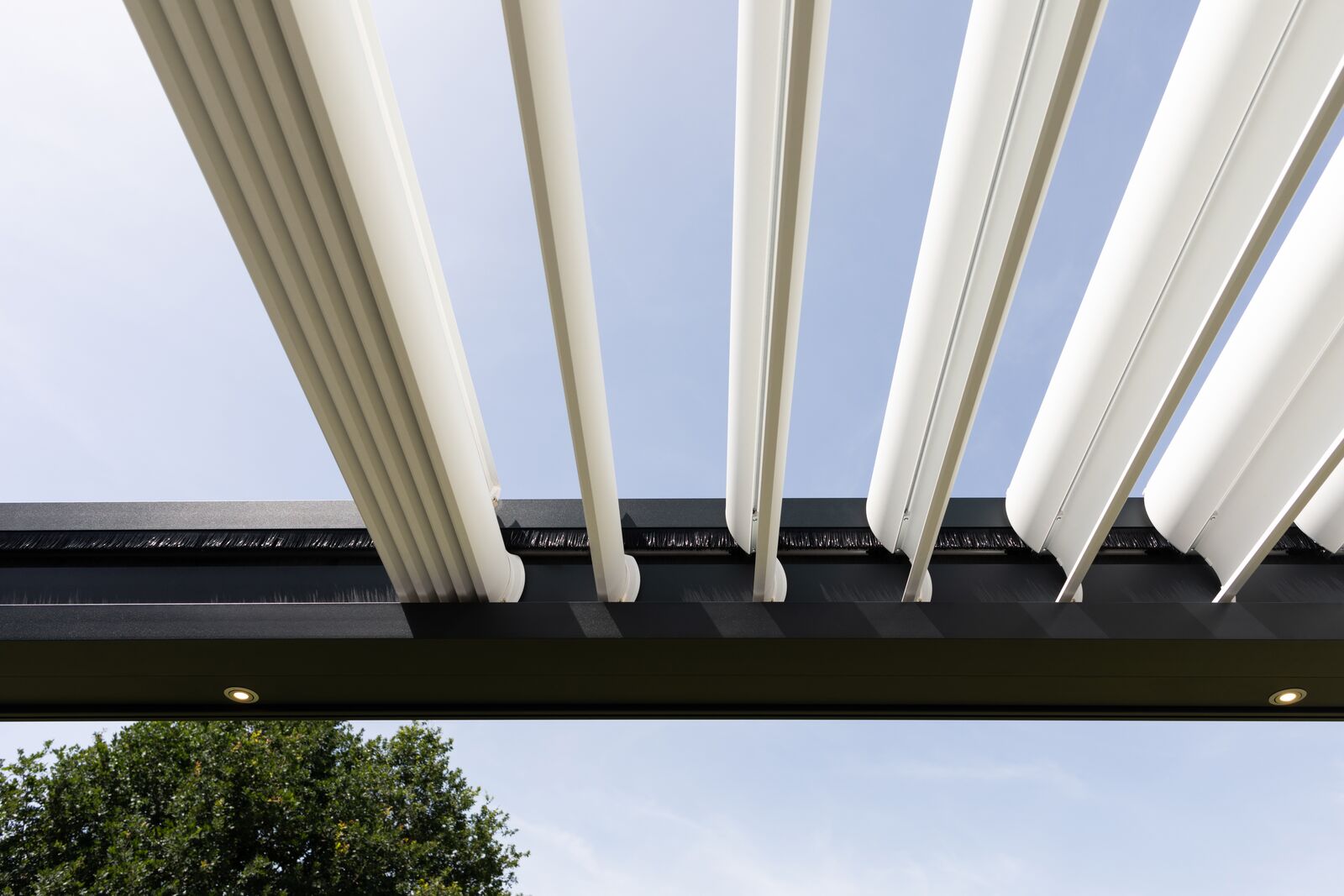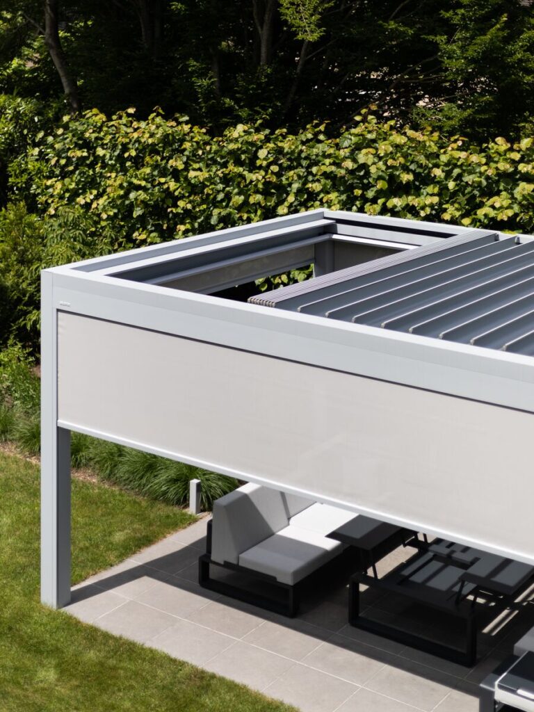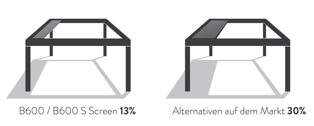 Die Alu-Lamellen schieben bis zu jeder gewünschten Position auf. Viel Sonne, viel Schatten, ein bisschen Schatten oder vor einem kleinen Regenschauer geschützt sein? Sie haben die volle Kontrolle. Die Storen Gerber AG berät Sie gerne zum Sonnen- und Wetterschutzprogramm von BRUSTOR.