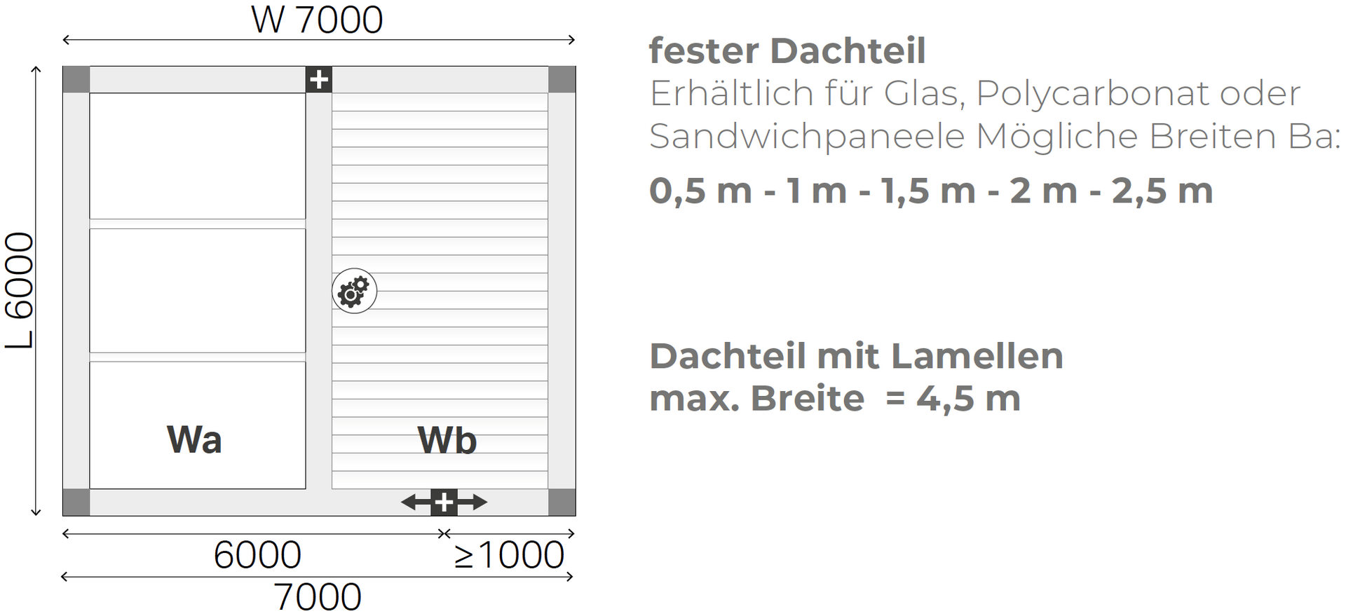 erhältlich mit Glas oder Sandwichpaneelen